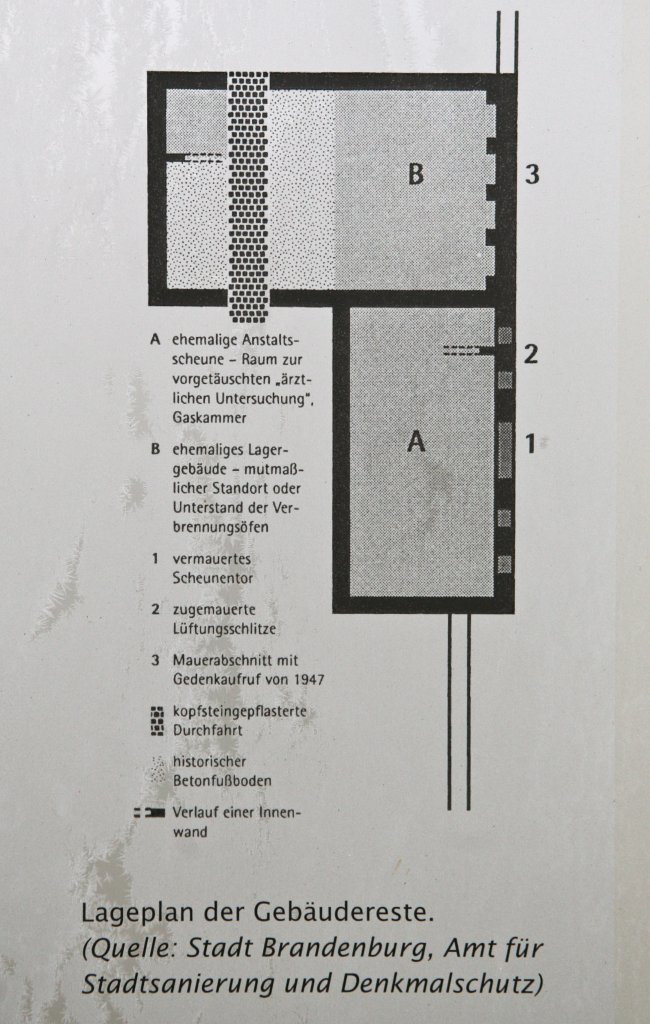 Map of the Brandenburg euthanasia centre togethor with current day photograph of the area. Soon after operations began due to complaints from locals the crematoria was moved outside the centre of Brandenburg to a house in nearby Paterdamm.