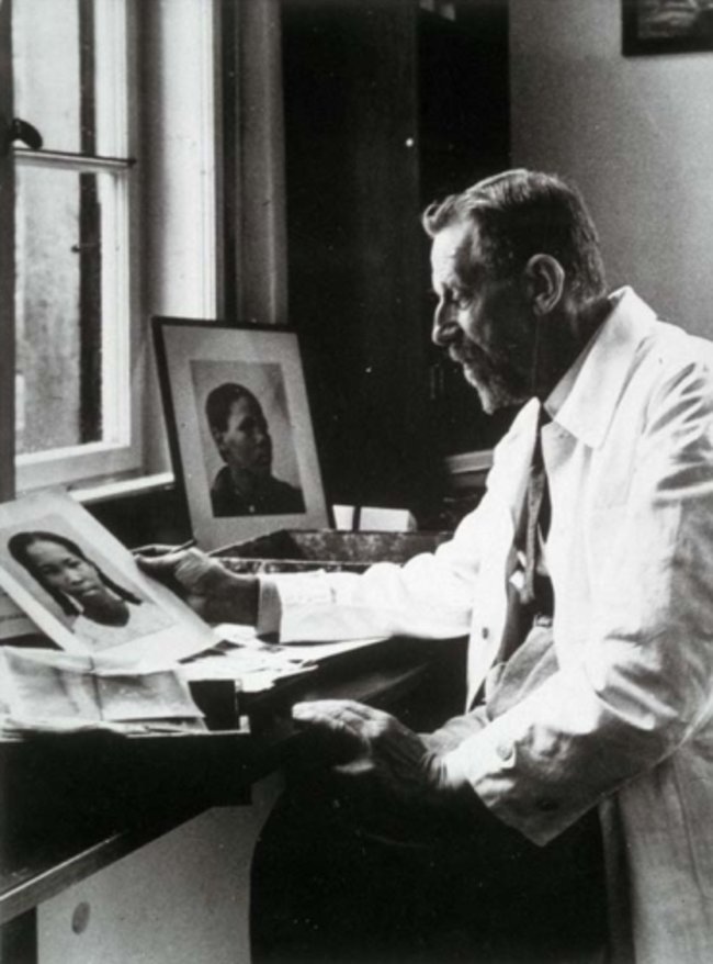 Eugen Fischer (1874 - 1967) was a German professor of medicine, anthropology and eugenics. He was director of the Kaiser Wilhelm Institute of Anthropology, Human Heredity, and Eugenics between 1927 and 1942. He was appointed rector of the Frederick William University of Berlin by Adolf Hitler in 1933, and later joined the Nazi Party. He strongly supported compulsory sterilization and Aktion T4 in Third Reich.