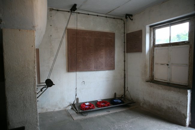 Photos of the the single muffle portable Kori oven in Natzweiler. See the crude body delivery device as compared to the more sophisticated Topf device used in Auschwitz/ Birkenau and Buchenwald. The oven has been adapted from its original form where it was fuelled by oil to being fuelled by coal or wood.
