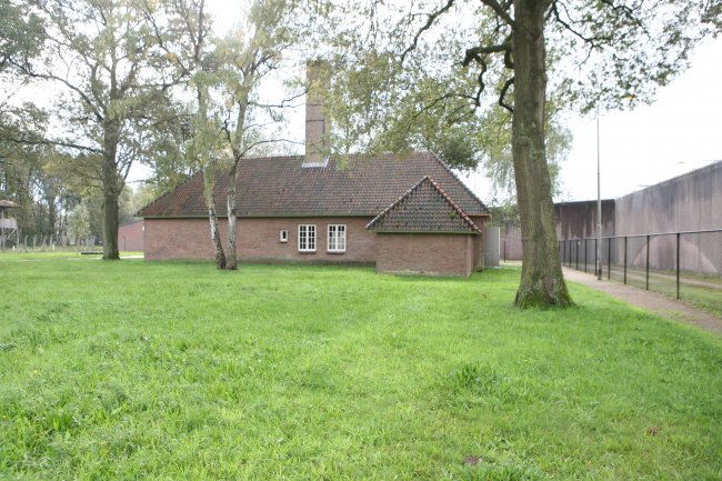"In the crematorium nearly all the bodies of men women and children who were killed in Camp Vught are burnt. The first victim in Vught is an 80 year old Jewish man who cant keep up with the march tempo on his way from the railroad station to the camp and collapses. He is buried at the Jewish cemetary in Vught. All future victims are either buried within the camp or cremated in a mobile oven.