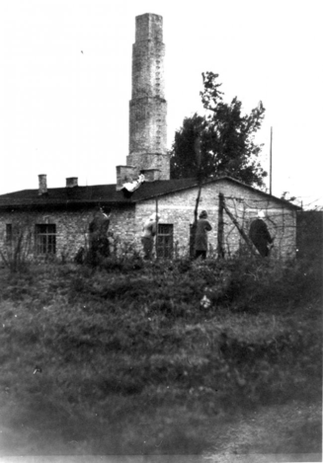 The crematorium building in Melk post liberation. The single muffle Kori permanent oven still exists. Photo Credit: Yad Vashem
