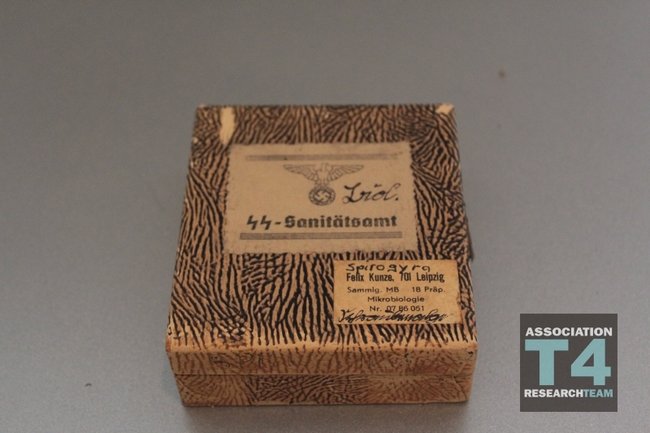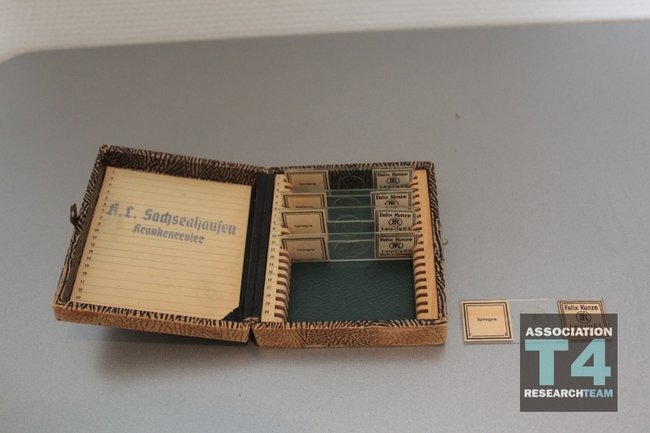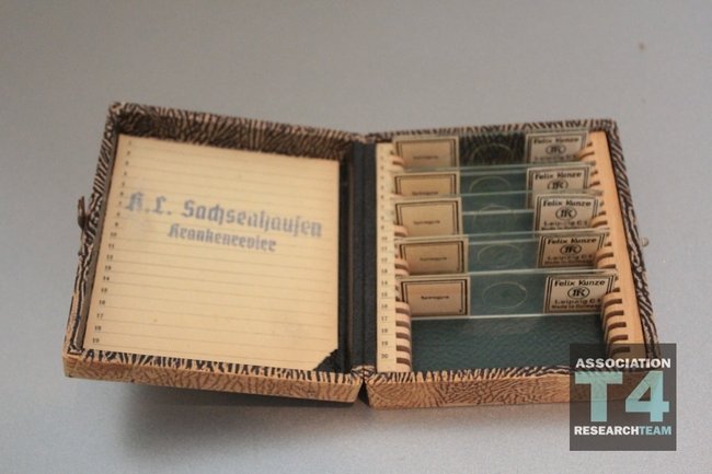 Unique, orginal box with microscope slides from Krankenrevier KL Sachsenhausen.